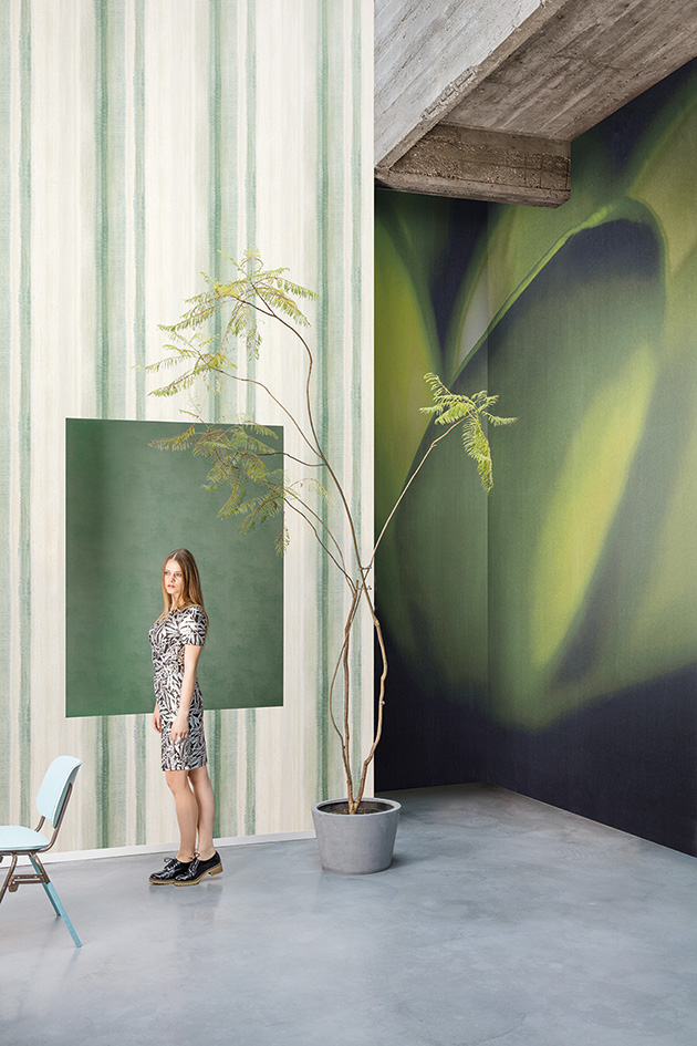 设计灵感源于自然景观,色彩柔和、逼真。所取植物来源于欧洲花园所尊养的吉祥植物,水墨晕染的工艺,使得图案结构纹理清晰,还原了自然之美,给生活增添了活力和安宁,体现了回归田园的装饰效果,其素色效果非常适合室内空间。建议木制、包木家具、以及亚麻、棉、绒等高级布艺与之搭配。