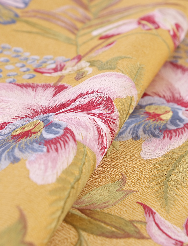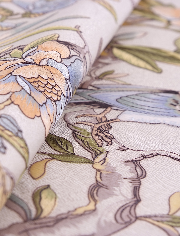 撷取苏绣的细腻精致和粤绣的明快饱满,套绣出利落的线条和浅浮雕般的深浅层次。设计师碰撞传统工艺与现代设计,在中式传统意象和西方流行装饰趋势中探寻交点,打造如诗般精致调性,带来吉祥长寿的美好愿景与向阳绽放的心底之花。
